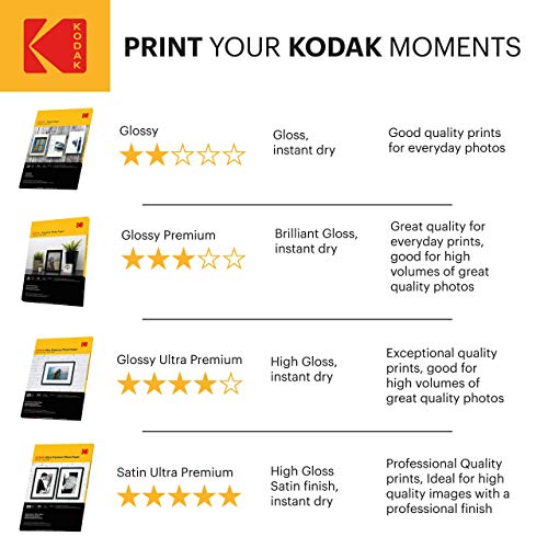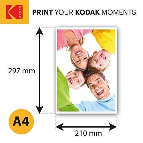 - Premium Glossy A4 Photo Paper – Kodak’s high-gloss photo paper (240gsm, 50 sheets) delivers vibrant colour, sharp detail and professional-grade results. Each 210 x 297mm A4 sheet is perfect for photo albums, wall frames, scrapbooks, craft displays, school or work projects and much more! Compatible with all major inkjet printers.